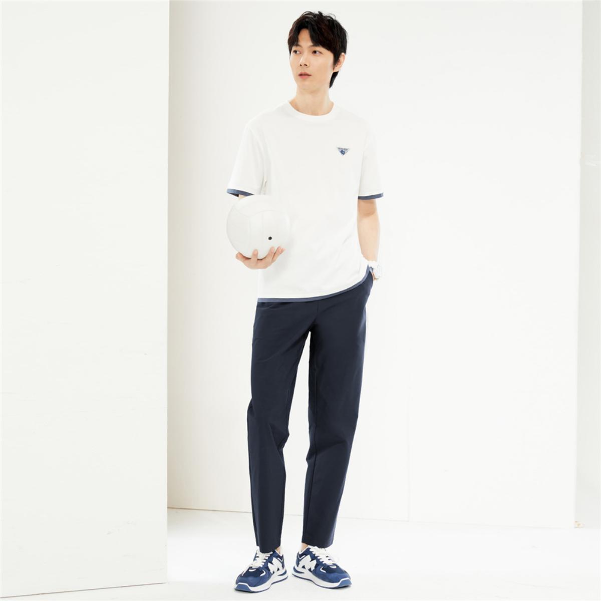 - These are comfortable jogger pants made from a cotton and polyester jersey knit fabric. They feature a mid-rise waist and a regular fit with an elastic waistband, perfect for casual wear or light activity.