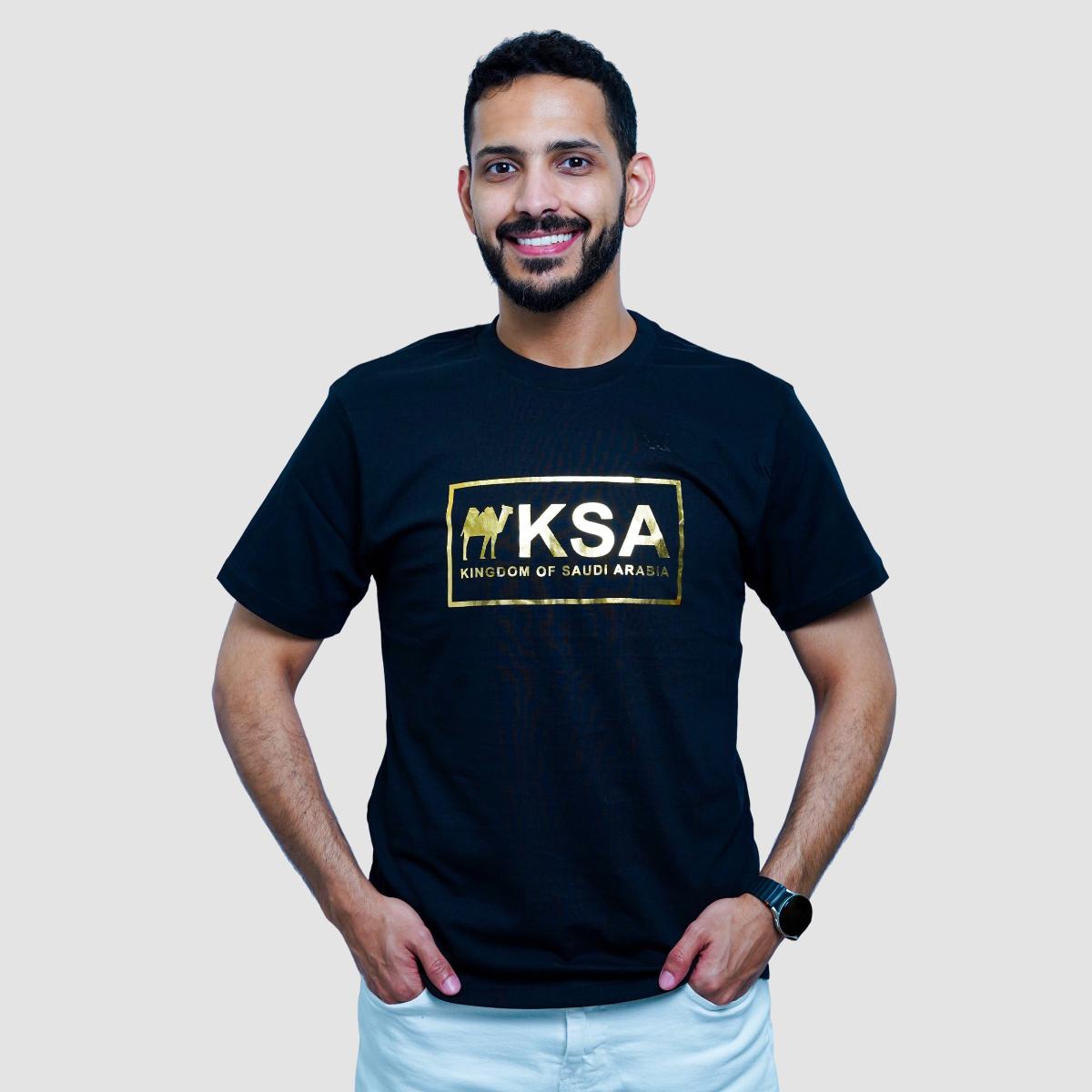 Men's Cotton Jersey Crew Neck Short Sleeve Slim Print Tee (Saudi National Day)