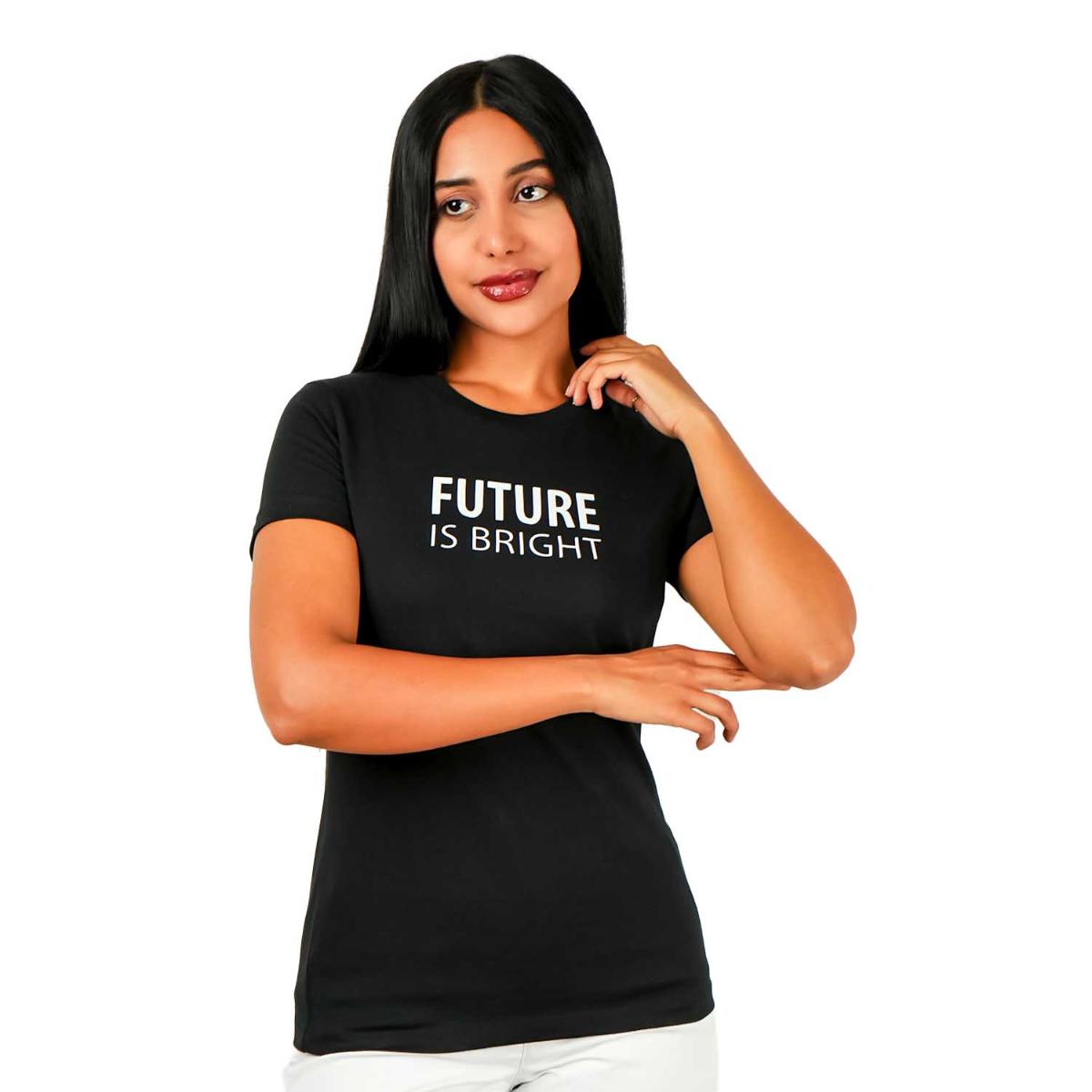 - تي شيرت نسائي مع طبعات رسائل مرسومة بأسلوب عصري.