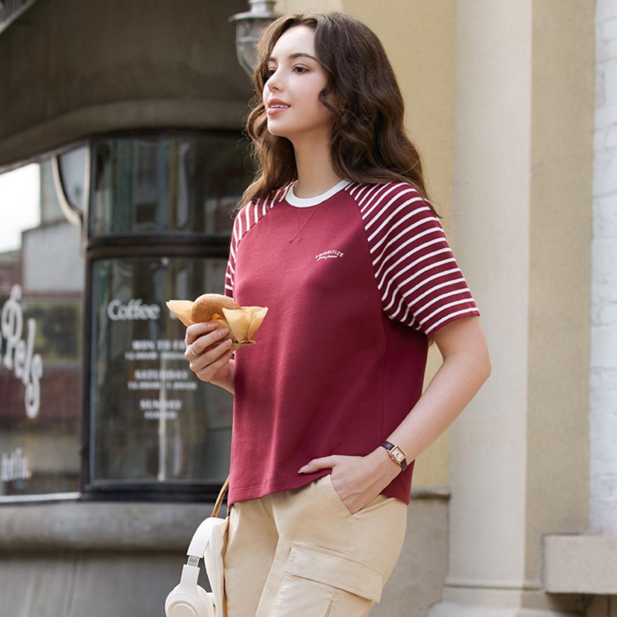- This women's t-shirt is made from a blend of 80% cotton and 20% polyester interlock fabric, providing a soft, comfortable, and slightly more substantial feel than a basic jersey knit