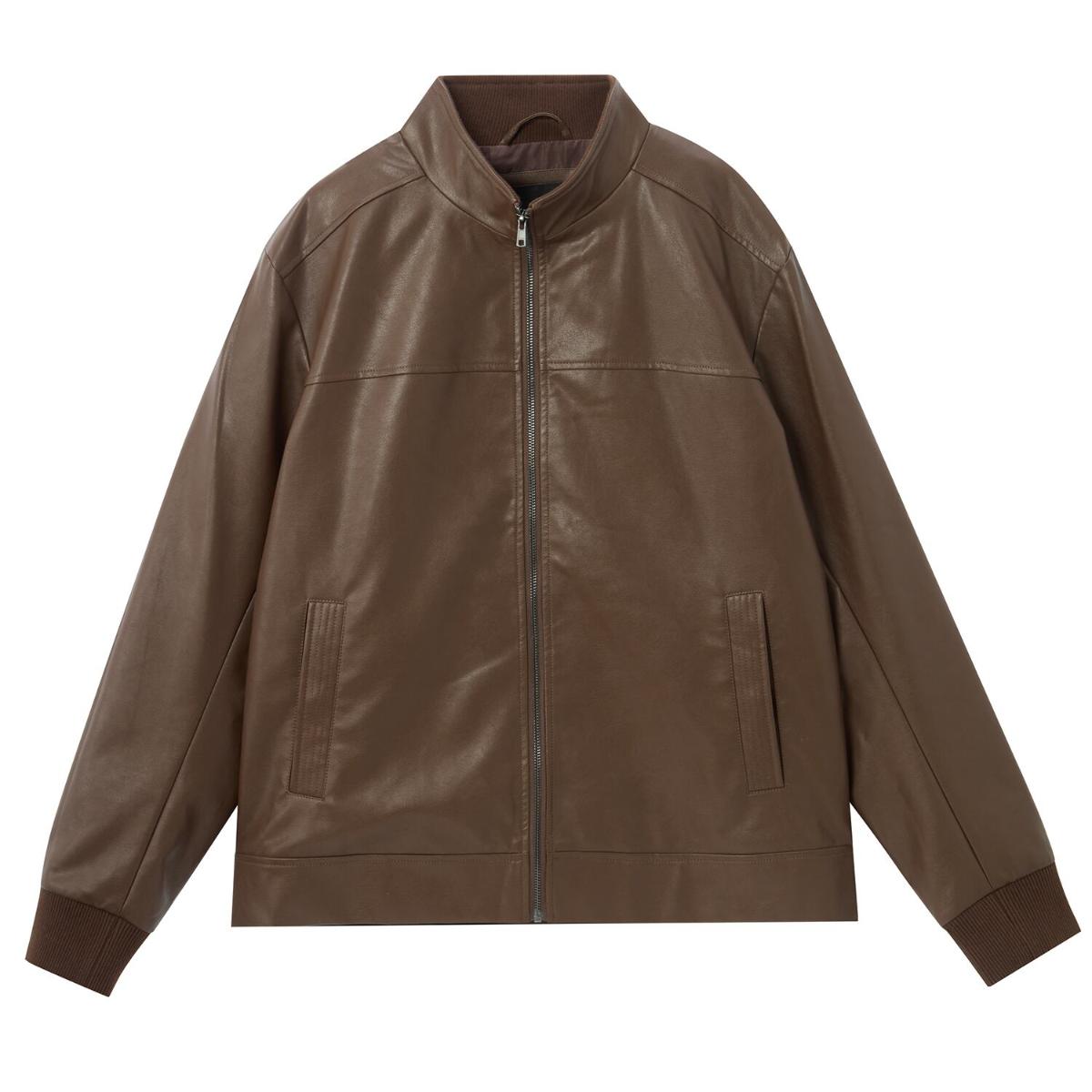 - A sleek and modern piece, this jacket offers the classic look of leather with the ease of faux leather. It features a comfortable regular fit, a stand-up collar, a full-zip front, and long sleeves for a timeless silhouette..