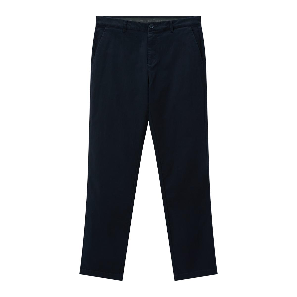 - These are men's mid-rise, regular tapered khakis made from cotton twill with added spandex for stretch. They feature an elastic waistband