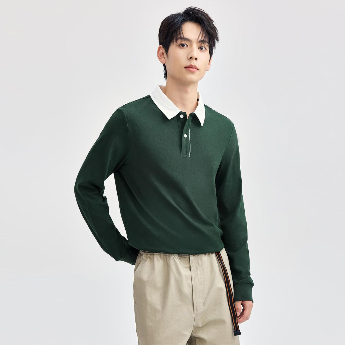 Men's Cotton Jersey Polo Long Sleeve Regular Solid Polo